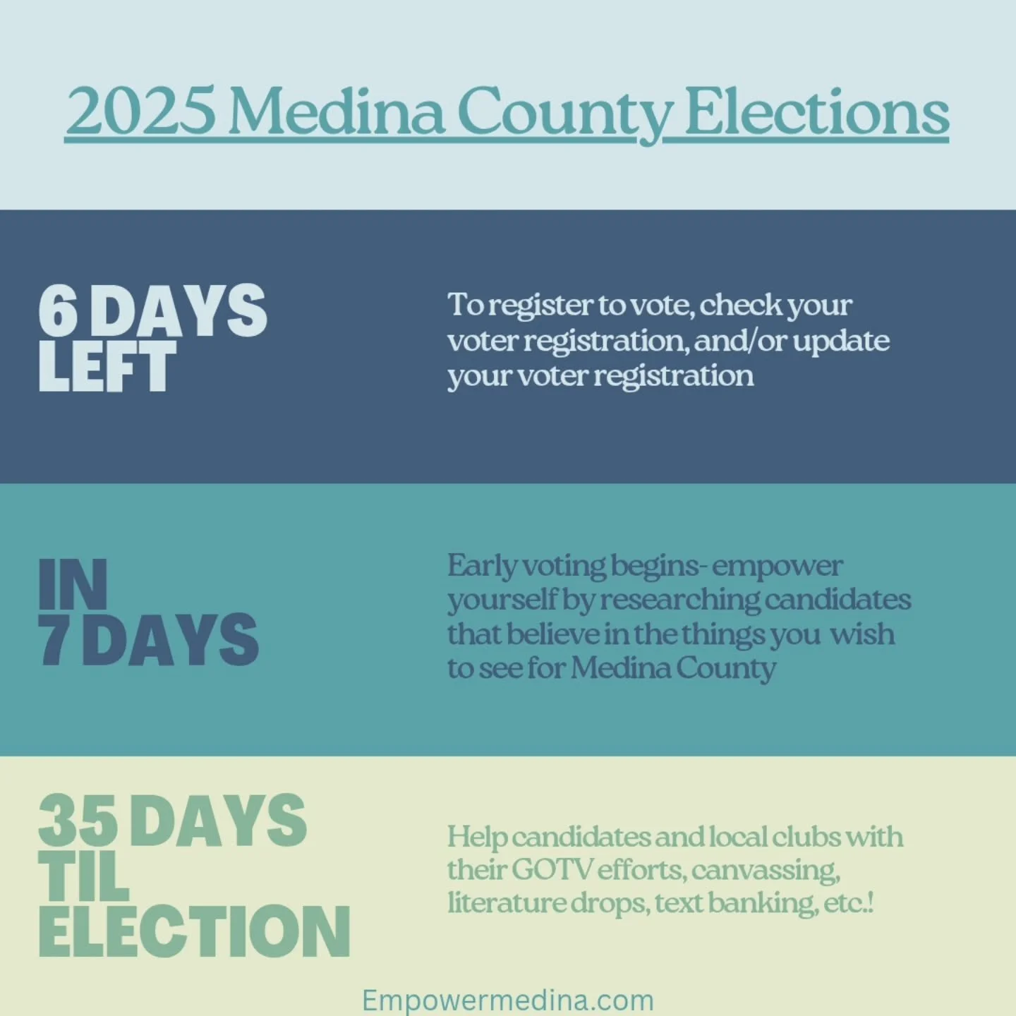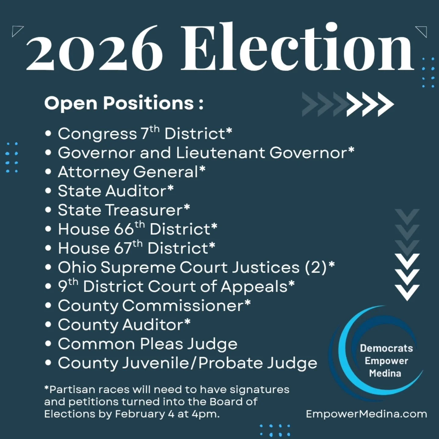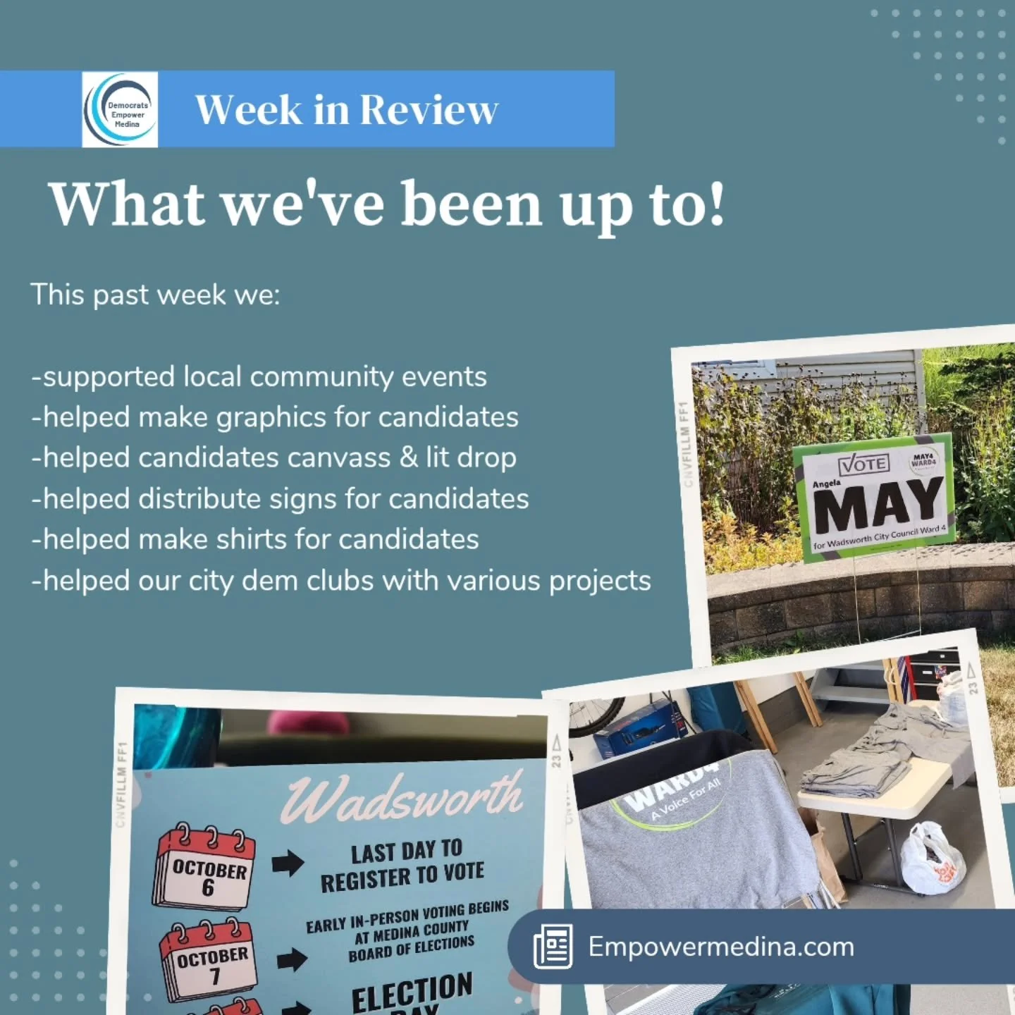 We are a grassroots organization that aims to EMPOWER voters, EDUCATE citizens and ELECT democrats and progressives in Medina County, Ohio.